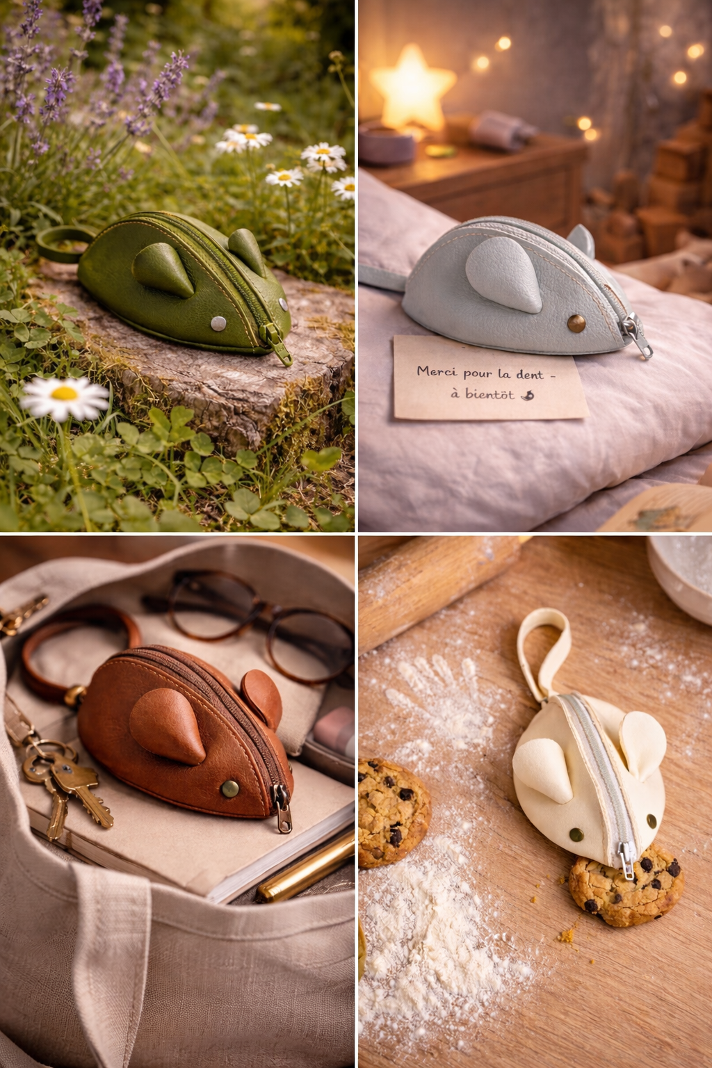 Chaque souris est une petite pièce de maroquinerie artisanale, entièrement réalisée à la main en cuir.